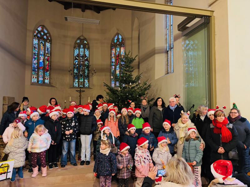 ... Weihnachtssingen in der Sanderslebener Kirche: Unsere Schüler und Schülerinnen mit den Schulspatzen der Kita eröffnen den Weihnachtsmarkt in Sandersleben am 13.Dezember 2025